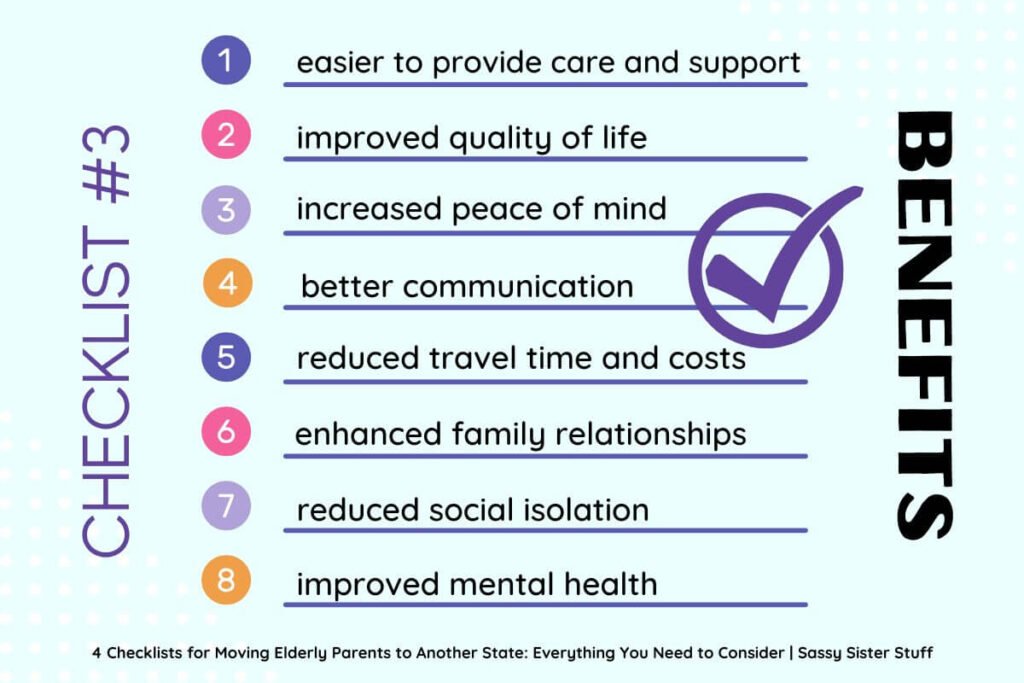 Overall, there are many benefits to consider when moving elderly parents closer to you. It’s important to weigh these benefits carefully and make a decision that meets your parents’ needs and preferences while also taking into account your own circumstances and resources.
