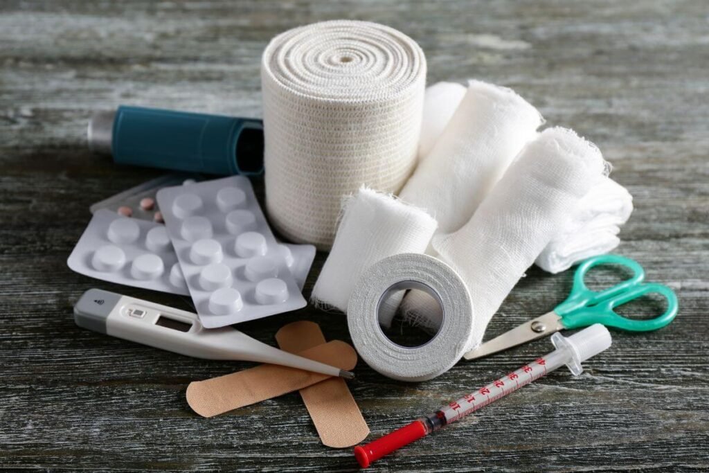 First Aid Kit: When I moved in with my dad, I quickly learned that his first aid supplies were spread all over the house. Band Aids, antibiotic ointments, wraps, wound tape and bandages, gauze pads, antiseptic, thermometer, tweezers, small pair of scissors, latex gloves — everywhere. I found things in drawers, closets, and cabinets all over the house. When the first accident happened, I realized we needed to have a first aid kit that I could put my hands on easily, so I gathered everything and created a first aid kit that we kept readily accessible in his bathroom closet. This way we could treat injuries quickly and avoid skin infections.